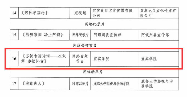 近日,四川省广播电视局公布了2023“时代光影 百部川扬”(神秘蜀韵 百部川扬)网络视听作品征集传播活动第四季度优秀作品名单,伟德BETVLCTOR1946选送的网络音频节目《苏轼古谱诗词—念奴娇 赤壁怀古》获得优秀奖。
