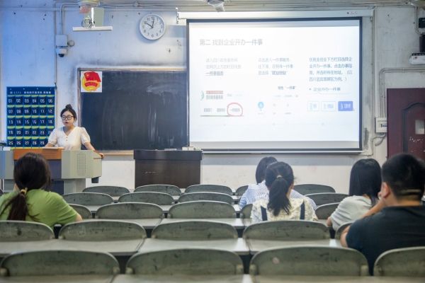 赵翔玥详细地讲解了公司注册流程及国家和地方对老员工创业的扶持政策,鼓励有创业意向的同学充分利用这些政策资源,为自己的创业之路保驾护航。胡漩怡分享了关于简历制作的实用技巧,强调简历内容要采用清晰简洁的表述方式、凸显个人特长、量化个人成果。