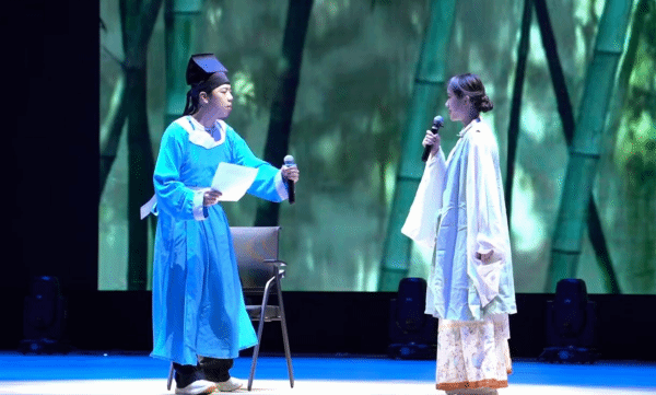 本次活动,23级大学语文教学班的同学们带来了13个精彩的节目,涵盖吟诵、演唱、朗诵等多种形式,为广大师生带来了一场视听与文化的双重盛宴。开篇以气势磅礴的集体朗诵,将观众带入诗文的美妙世界。随后,一首首经典诗词被同学们饱含深情地吟诵出来,穿越时空,传递着诗人的情怀、浸润着同学们的人生体验。同学们深入剖析诗文情感,通过出色的表现能力以及精美的服装妆造,展现出诗文背后蕴含的文化魅力。