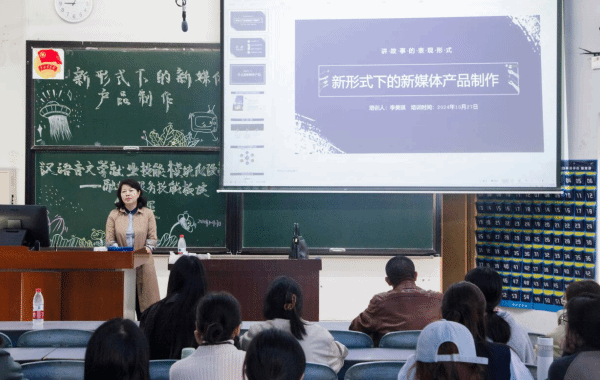 讲座围绕新媒体的定义、新形势下的新媒体产品、新媒体产品的分类、如何做好新媒体产品四个方面的内容展开。李美琪分析了当下新媒体的现状,指出了新媒体行业人才必须具备的基本技能,并结合自身工作经验和实践案例,深入浅出地阐述了新媒体产品制作中新闻价值的抓取、标题文案的撰写、视频制作等方面的技巧。她强调,制作新媒体产品时要抓住事件最大的亮点,适当增加细节描述,突出典型性,增强可读性和吸引力。李美琪还针对老员工就业提出了建议,她鼓励同学们树立就业信心,不断夯实专业基础,努力提升新媒体技能。