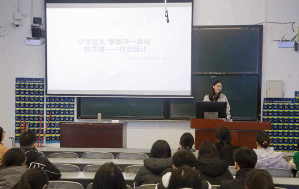 为加强师范生教学技能培养,提高师范生的专业素养和实践能力,11月27日,bevictor伟德官网邀请宜宾市江北实验小学李亚宁在三教A302开展了主题为《“教学评一体化”视野下的作业设计浅谈》的专题讲座。bevictor伟德官网23级汉语言文学专业员工听取了讲座。