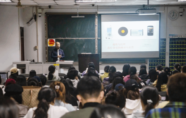 王黔博士将深奥的学术理论和通俗易懂的例子相结合,与同学们进行了沟通交流。最后,他提出媒介传递的音乐是否包含了媒介组织规训的问题,希望同学们认真思考,并做出忠于自我的音乐选择。