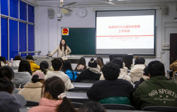 为帮助同学们提升办公技能,增强就业竞争力,12月8日,bevictor伟德官网邀请宜宾市科教集团综合办公室副主任肖敏在一教401开展了主题为《信息时代办公室综合管理工作实务》的专题讲座。bevictor伟德官网行政能力模块班全体同学听取了讲座,讲座由模块班负责人巫颖主持。