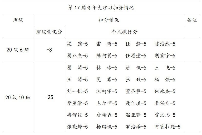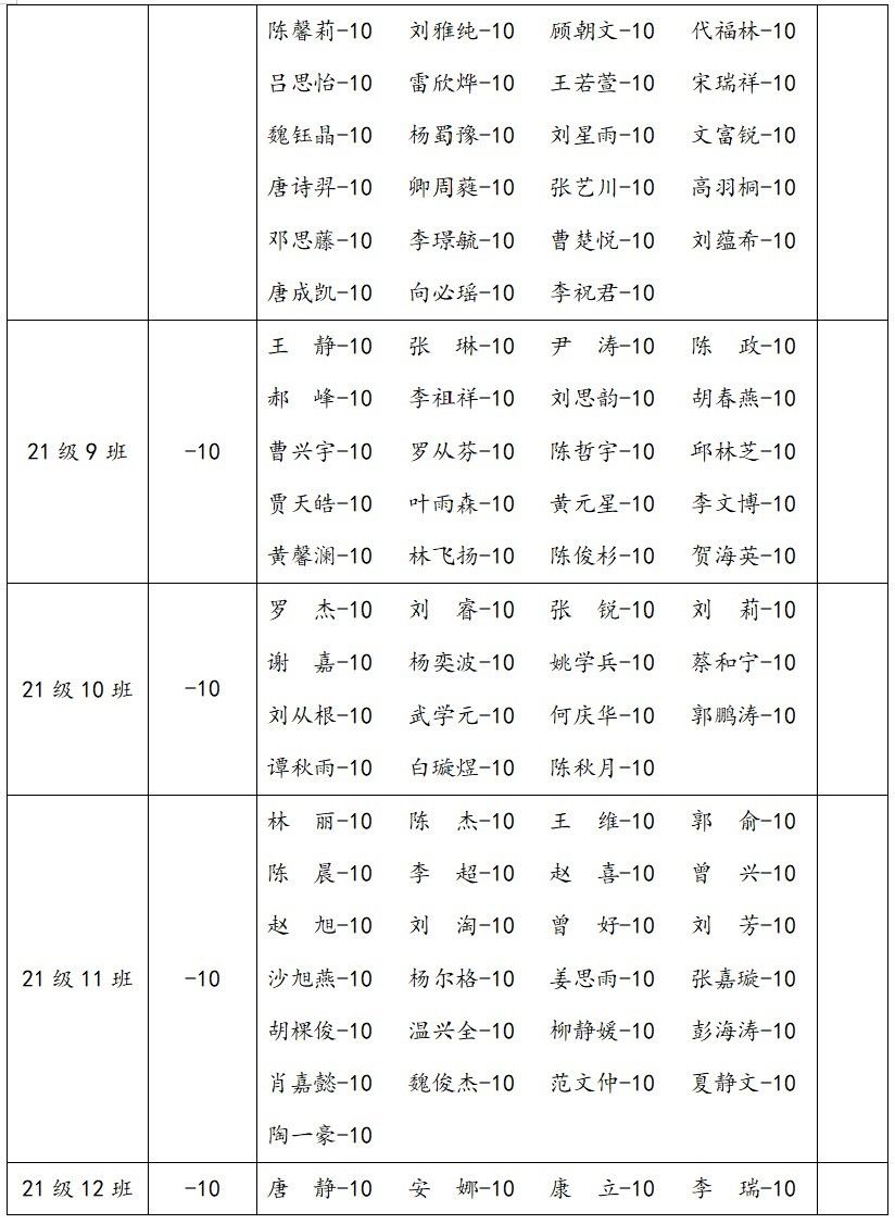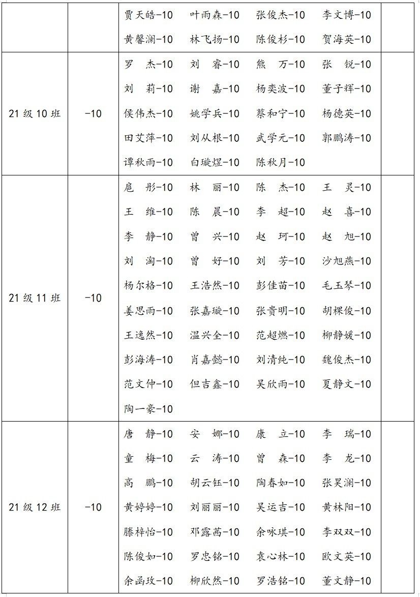 3.在2023-2024学年上学期第四堂团课中,以下班级团支书开会迟到,特此批评;据细则,进行全院通报批评—次,扣除个人操行分3分。