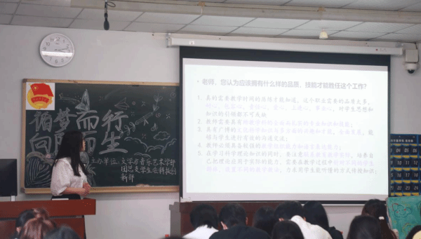 为帮助同学们明确学习目标与发展方向,更好地制定今后的职业生涯规划,5月18日,文艺学部在硕勋楼202教室举办了“循梦而行 向阳而生”职业访谈活动决赛。文艺学部员工会主席王雪、聂比,科创部部长陈兴蕊,学资部副部长谭容,组织部副部长李亚茹参加活动并担任评委。