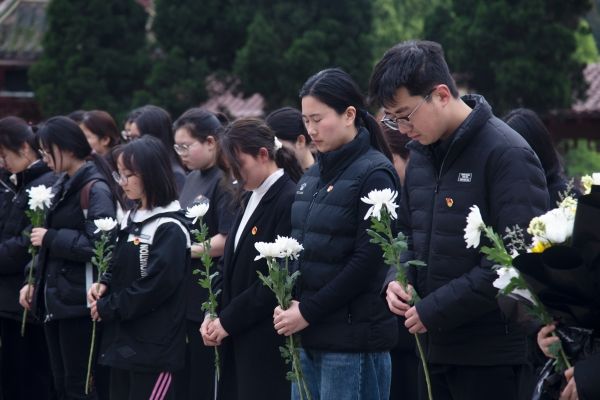 上午10时,师生整齐列队于烈士纪念碑前。全体人员垂首肃立,向为民族解放和国家建设献出生命的英烈默哀三分钟。接着,员工代表手捧白菊缓步上前,向纪念碑敬献鲜花,表达对革命先烈的深切追思。