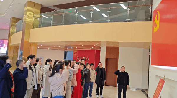 在奋斗与辉煌——中国共产党100年礼赞展馆,高正伟带领全体党员教师重温了入党誓词。在党旗的映衬下,党员们举起右拳,庄严宣誓。这一环节不仅让党员们再次回顾了入党时的初心和使命,也进一步坚定了为共产主义事业奋斗终身的决心和信心。
