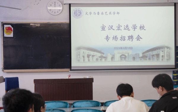 招聘会现场,宣汉宏远学校负责人对学校进行了介绍。他谈到,宣汉宏远学校是一所集小学、初中、高中为一体的川东优质名校,多次获得先进学校表彰,拥有良好的学风、教风,能为青年教师专业成长提供最优质的平台。随后,学校对员工们进行了现场面试。试讲环节中,同学们准备充分,表达流畅,思路清晰,充分展现出了扎实的专业能力。最终,宣汉宏远学校录取文艺学部员工10名,分别为汉语言文学专业5名、音乐学专业4名、舞蹈表演专业1名。