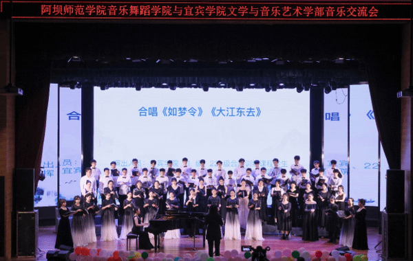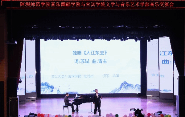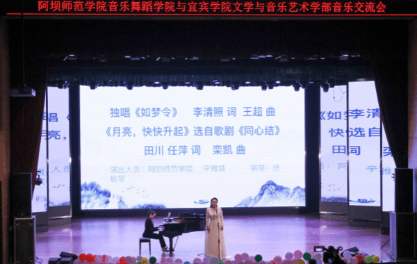 阿坝师范学院音乐舞蹈学院的老师们也带来了精彩的表扬,赢得了现场观众的喝彩。独唱《忆伊人》《战士歌唱毛主席》、《如梦令》用歌曲浓缩故事,淬炼一段人生,带领受众穿越时间与空间;民歌《想亲亲》、《槐花故事》《来到遥远的地方》以感情真挚见长,用歌声展现百姓日常生活。最后,交流音乐会在合唱表演《如梦令》《大江东去》中落下帷幕,让现场观众感受到了音乐的无穷力量。