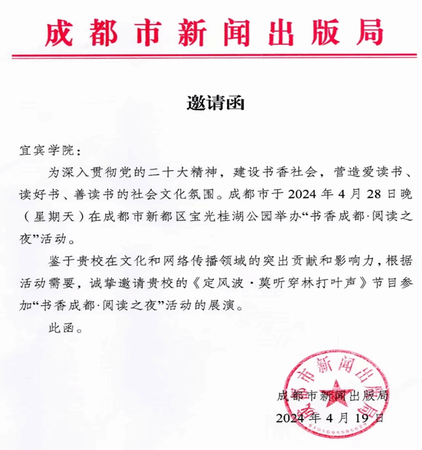 近日,由中共成都市委宣传部指导,中共成都市新都区委宣传部、成都市新都区文化广电体育和旅游局主办的“4·23世界读书日”全民阅读系列活动之“书香成都·阅读之夜——今夜品读书香新都”在新都区桂湖公园顺利举行。伟德BETVLCTOR1946文艺学部师生受邀参演,并圆满完成了苏轼古谱诗乐舞作品《定风波·莫听穿林打叶声》的展演工作。
